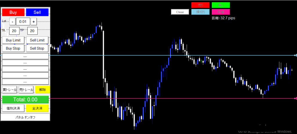 ワンクリックで注文を行えるオリジナルオーダーパネルです。インジケーター等と一緒に活用して下さいね”