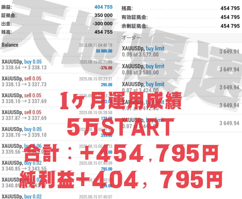 この様に、『天地爆速』とは、トレンドの天井・底を上手く捉え、利益に繋げて行くという、ごくシンプルなトレードロジック。