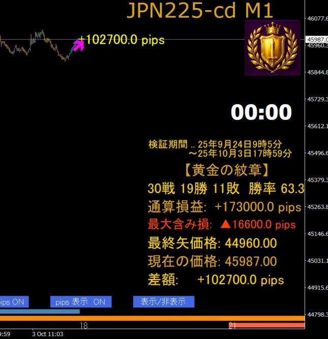 インジケーター開発者によると、黄金の紋章は、開発迄に2年のつき費を費やしているとのこと。