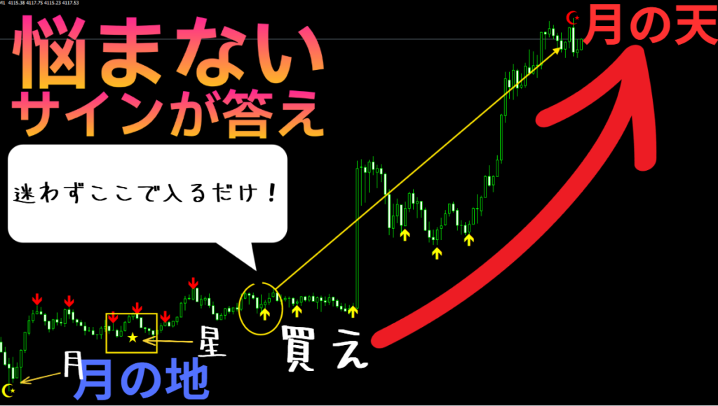 また、売りか、買いか一目瞭然なので、その場でエントリーの判断に迷うことはありません。