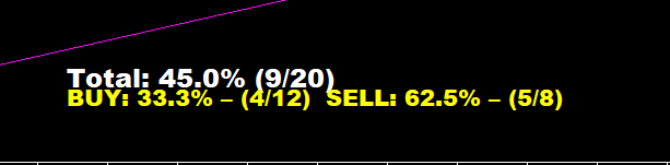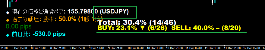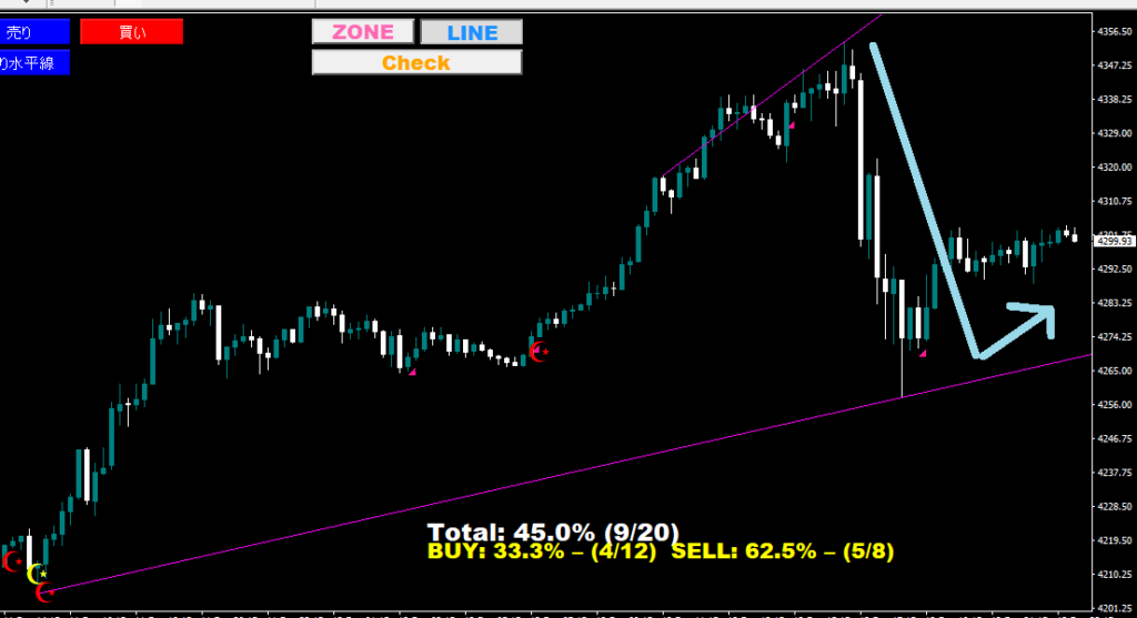 また、上記の場合、「SELL 62%」と勝率判定が出ているので、売りサインを待つことにします。