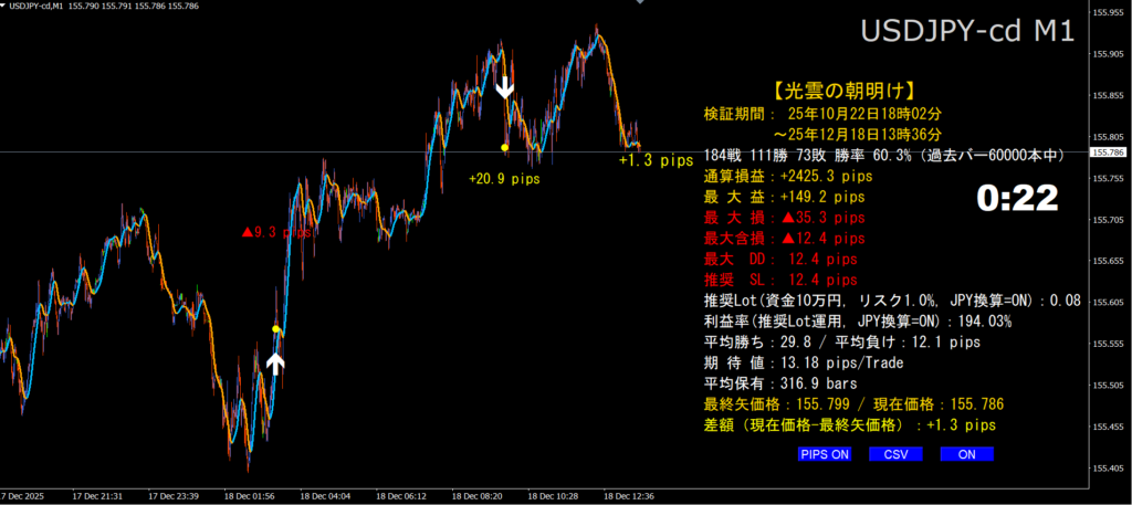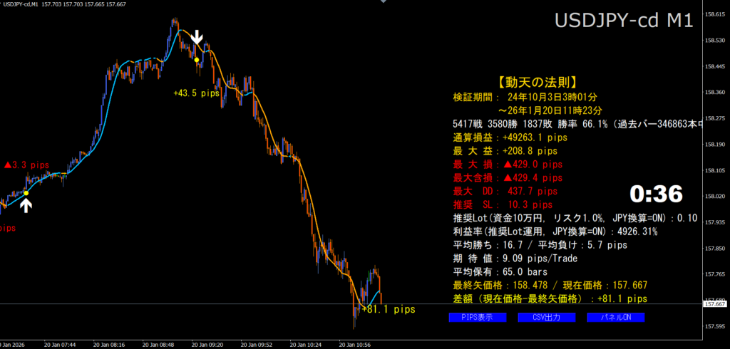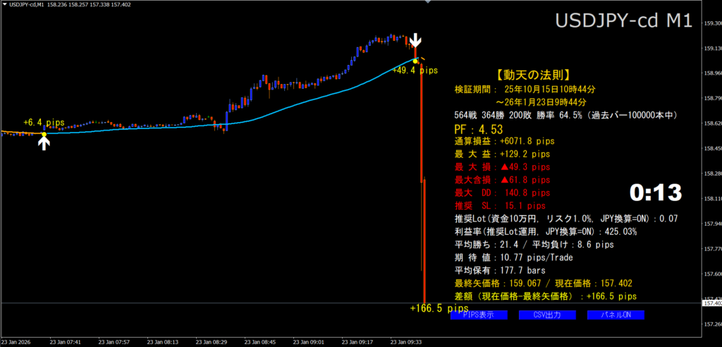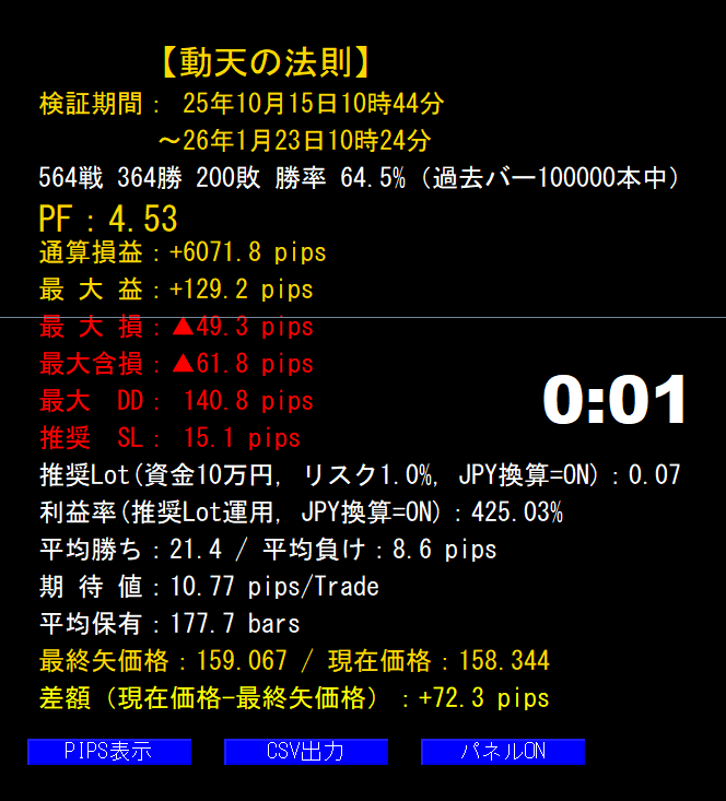 臨界点を捉える【動天の法則】★ドル円+他通貨★過去とリアル矢印が完全一致★バックテストデータ出力機能付!