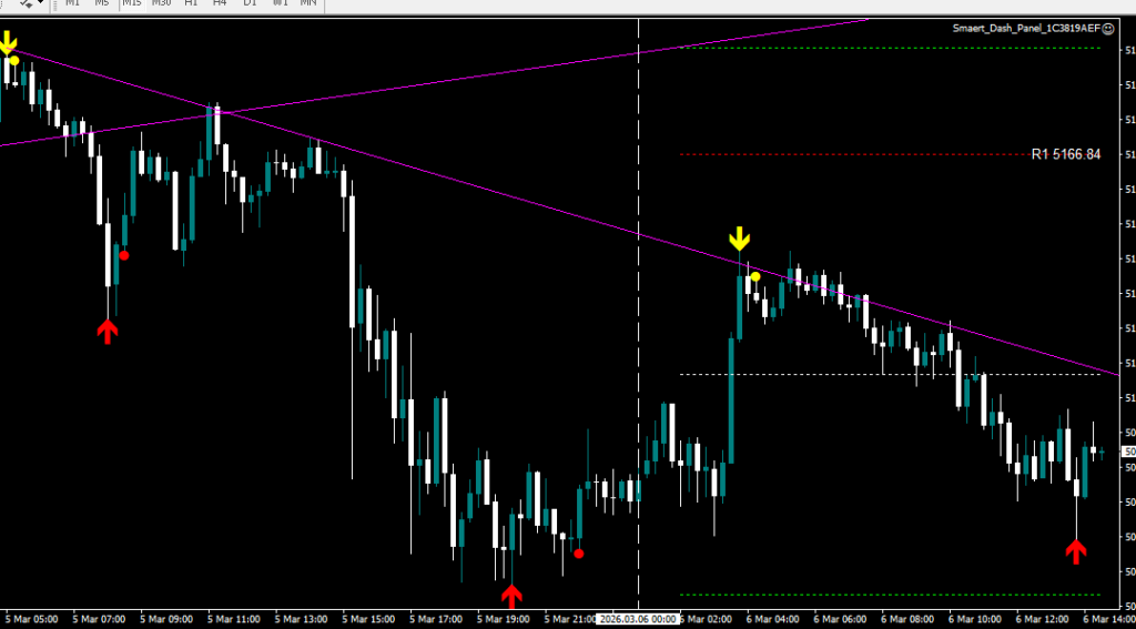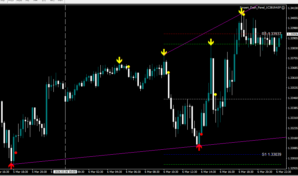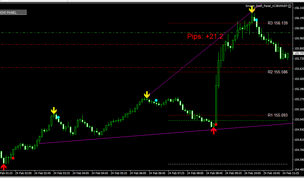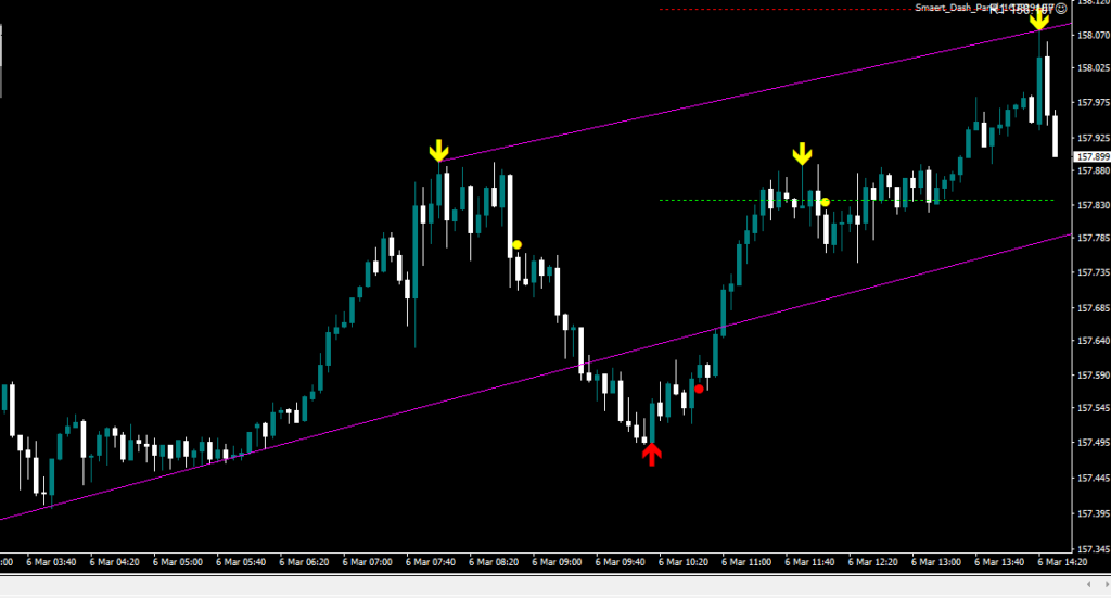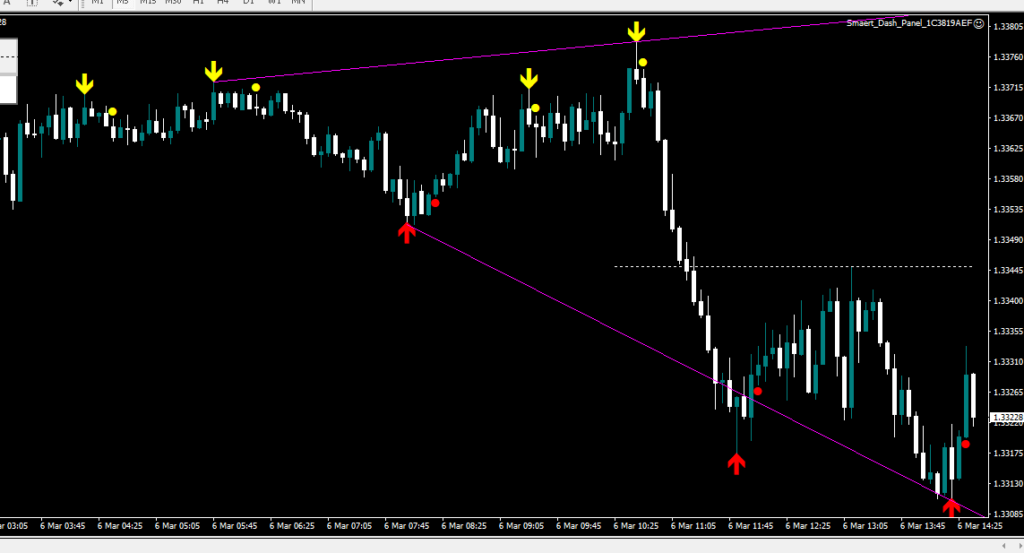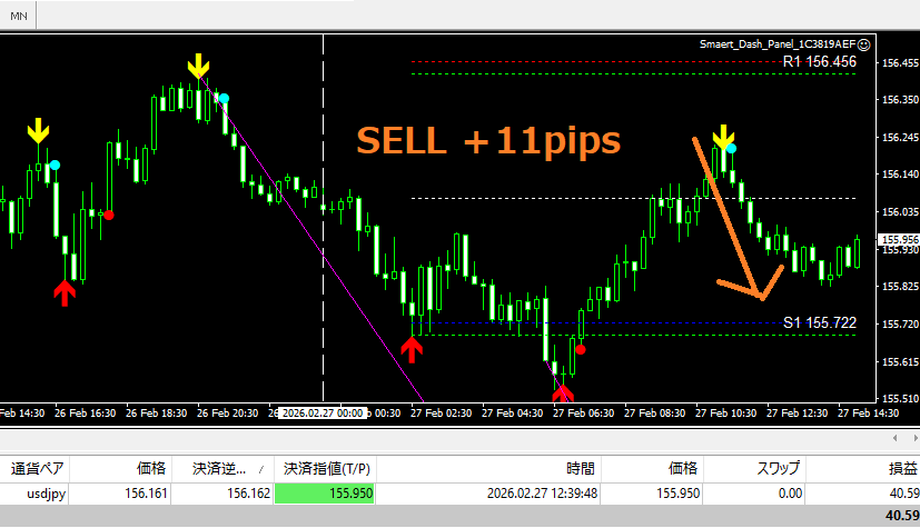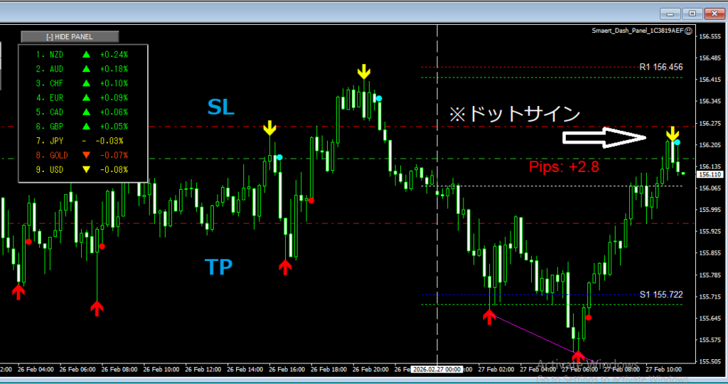 エントリーの判断は、『矢印サインを確認』→『ドットサイン点灯』→『エントリー開始』・・・となります。