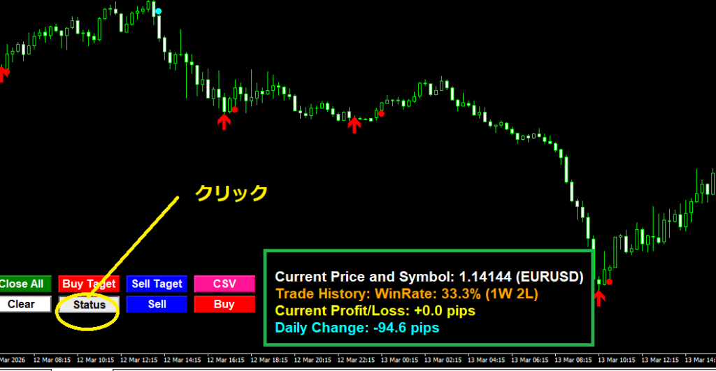 保有中のポジションの合計損益をリアルタイムで『pips』でで表示することが可能です。
