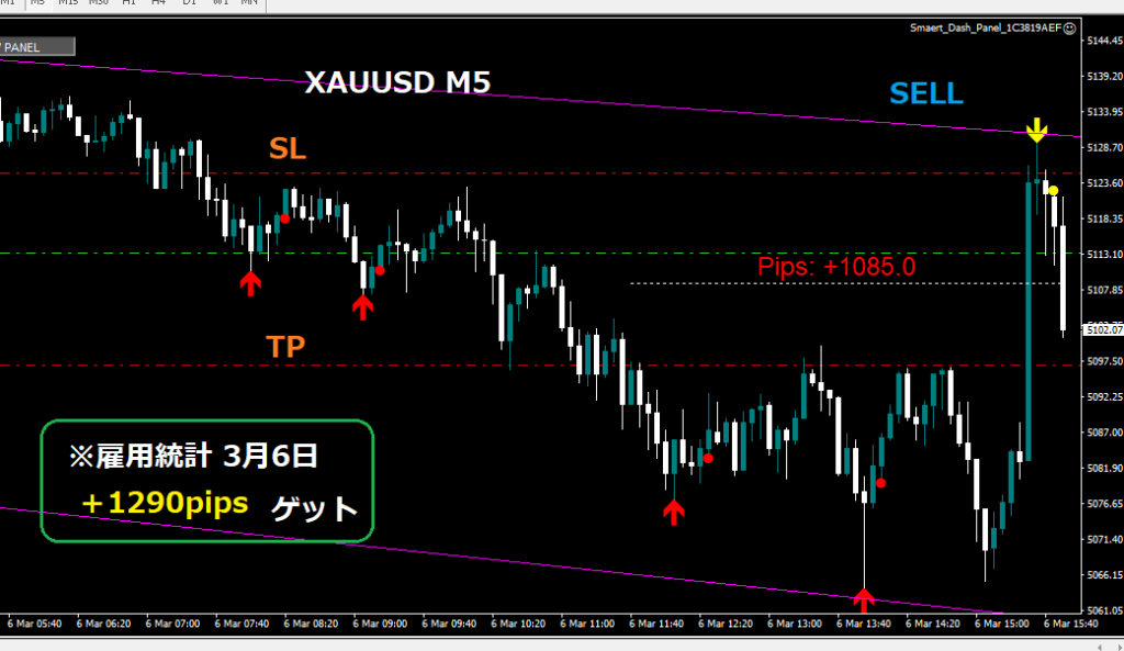 【雇用統計~GOLD逆張りスキャル】のトレードの感想
