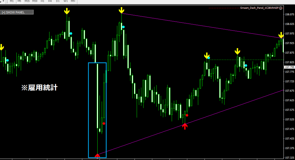 ✅ドル円は、発表後大きく下落→その後V字回帰