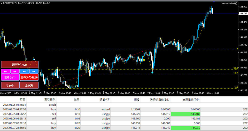 👉こちらは「三尊波動FX」の有効性を証明する生きた教材です。